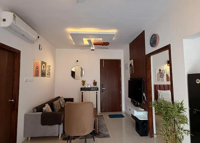 Апартаменты Anudeep Stays 2Bhk Adora Goa Amoret Homes Dabolim с личным бассейном расположены в радиусе 2 км от Джоггерса Парк Чикалим. Сейнт Эндрю Черч находится в 15 минутах езды на авто от апартаментов, в 5 км от аэропорта Даболим.